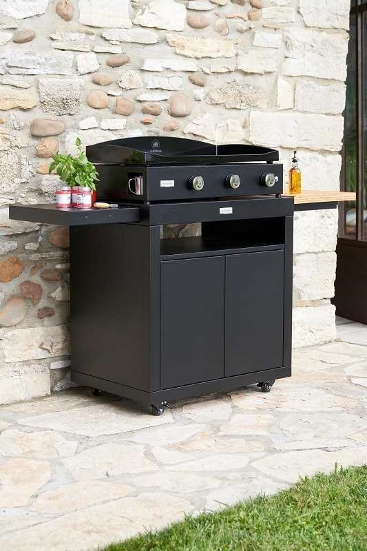 Plancha gaz Forge Adour Modern 75 acier noir sur chariot + capot